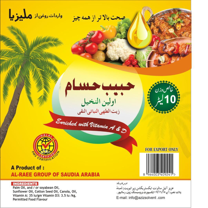 Aziz Oil Solvent & Extraction is a leading producer of Banspati ghee and cooking oil, known for its high-quality manufacturing and strict quality control. Operating from the Export Processing Zone in Risalpur, the company sources premium raw materials like soybean, canola, and rapeseed from global markets to ensure consistently superior products. With modern facilities and efficient production processes, Aziz Oil supplies reliable edible oils to consumers across Pakistan, Afghanistan, and Central Asia.